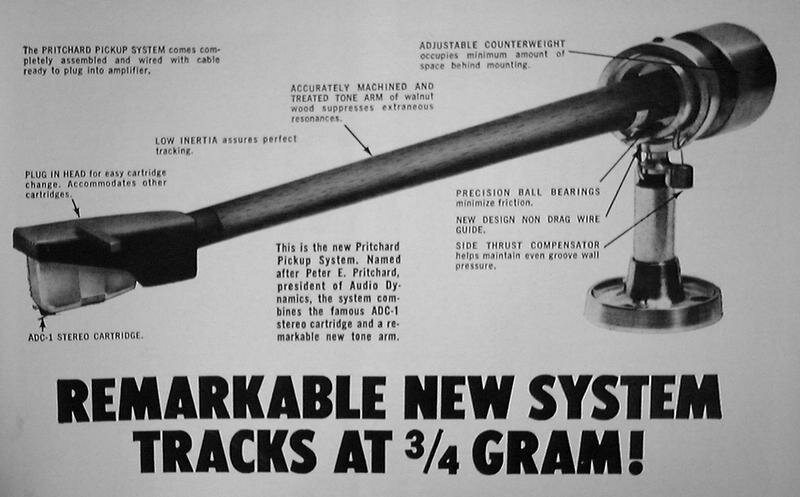 "Die heutige New York Times enthält eine kurze Anzeige zum Tode von Audio-Innovator Peter Pritchard, der am 23. August in Austin, Texas im Alter von 83 Jahren verstorben ist. Peter gründete Audio Dynamics Corporation in New Milford, CT in den frühen 1960er Jahren. Sein original ADC-1 (bewegte Masse: 0,6 mg, Nadelnachgiebigkeit 20x10-6cm/dyn in alle Richtungen, Auflagedruck : 1 Pond oder weniger an Spitzentonarmen) war ein bahnbrechendes Produkt. In der Tat zeichnen sich alle ADC-Pickups durch ihre extrem hohe Nadelnachgiebigkeit und niedrige Auflagekräfte aus und er verfolgte diesen Ansatz in einer Reihe von erfolgreichen Entwürfen einschließlich der bekannten ADC-10, ADC-25 und XLM-Systeme. Sie basierten alle auf seinem "induzierten Magnet-Prinzip", das sich von den älteren GE Systemen mit variabler Nachgiebigkeit ableiteten, die Wechselspielern als erschwingliche, magnetischen Tonabnehmer in den 1950er verwendet wurden.